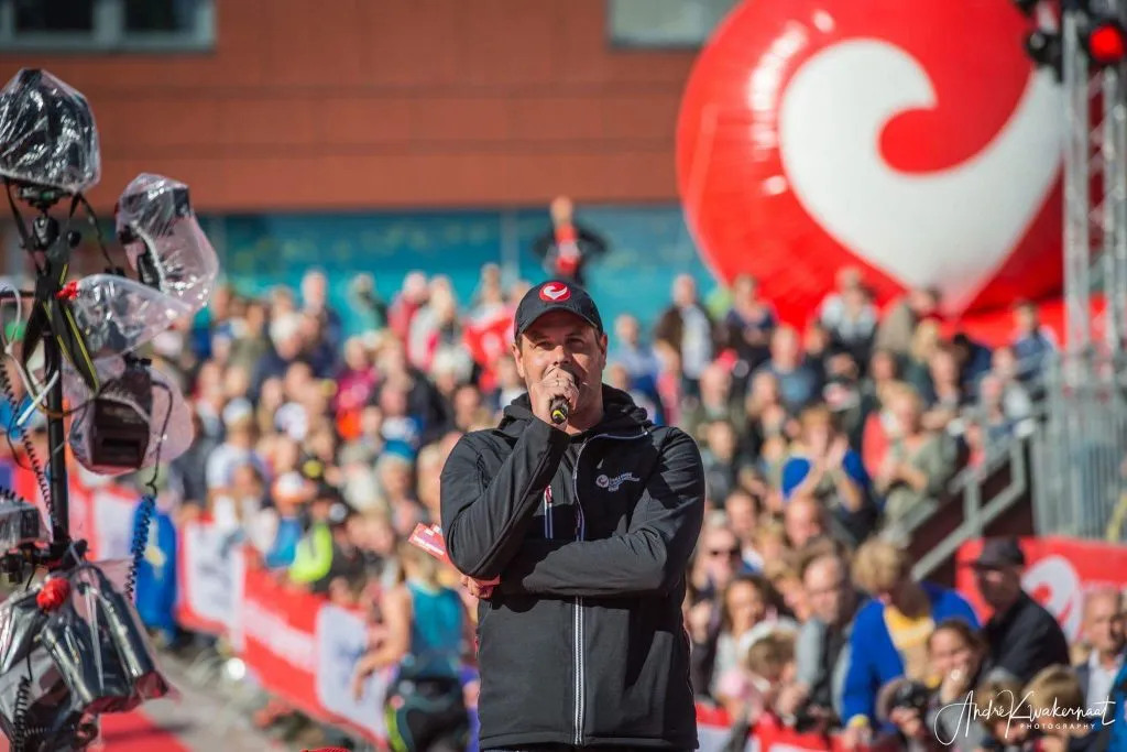 Met zijn 34 jaar is Arjan toch al wel een oude rot in het vak. Niet zo oud als collega’s en vrienden Wim van de Broek en Ruud de Haan, maar toch, heel ervaren. Het begon allemaal een jaar of zes geleden, toen hij bij een lokaal wedstrijdje (‘een run-ATB-run’) werd gevraagd de boel aan elkaar te praten. Dat ging en beviel goed en via eerder genoemde speakers rolde Arjan vervolgens het vak in. Nu, zes jaar, heel veel weekenden en triatlons verder, staat Arjan voor zijn eerste Triathlon Utrecht.